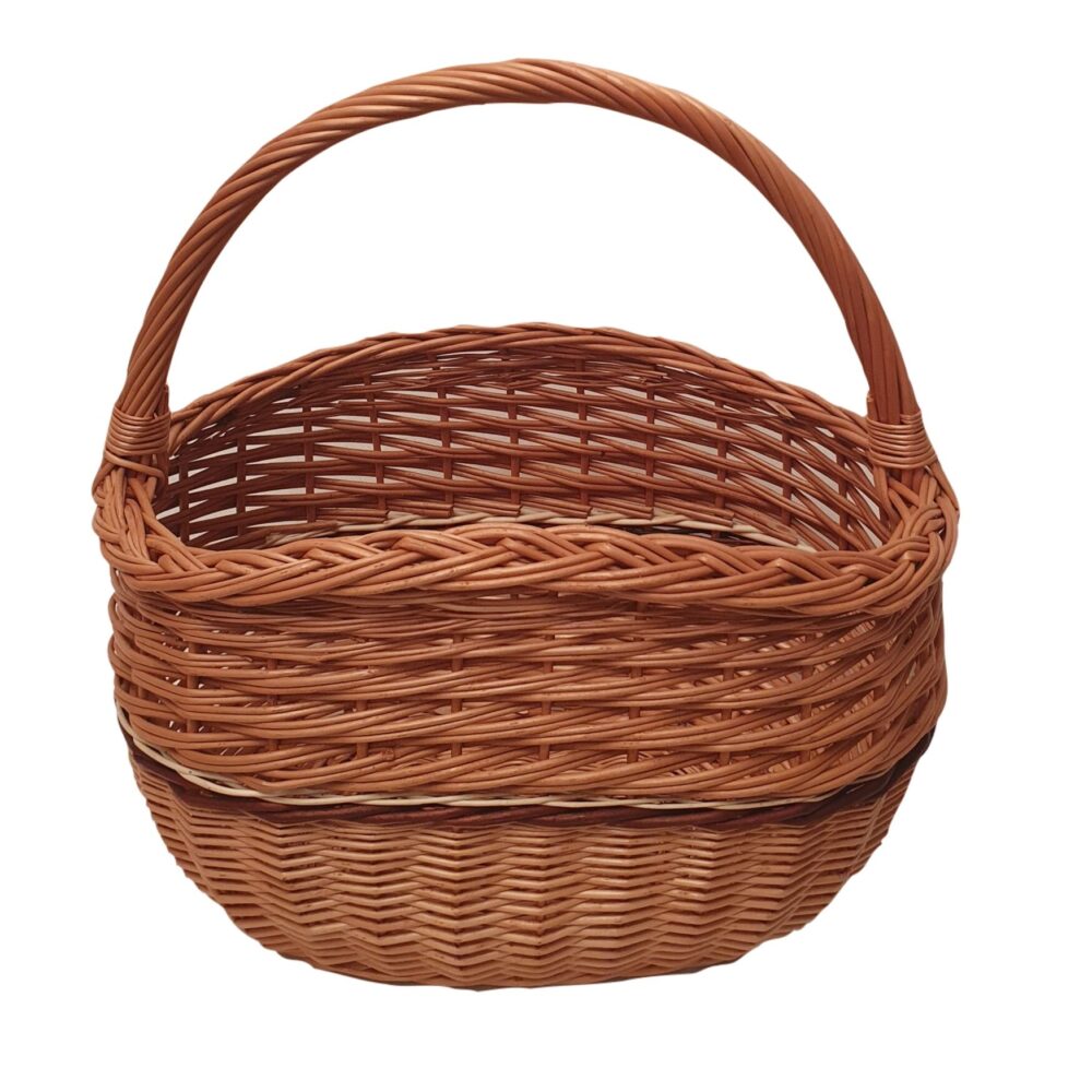 Dekoratívna väzba s mnohými ozdobami, úhľadná a hustá.Klasická forma v prírodnej farbe s prídavkom maľovaného prútia.Kôš je veľmi priestranný a hrubá rúčka to robíže bude slúžiť mnoho rokov aj pri intenzívnom používaní.