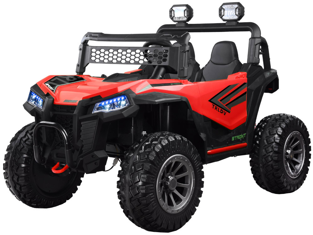 Veľké dvojmiestne terénne auto na batérie BUGGY 4x4 je úplnou novinkou pre každého malého vodiča. Športové autá sú vozidlá pre dve osoby s pohodlným sedadlom, bezpečnostnými pásmi a pohodlným odpružením, ktoré vás odvezie kamkoľvek budete potrebovať. Pohon so 4 motormi, tlmičmi a mäkkými penovými kolesami umožní pohodlnú jazdu v teréne. Dvojité terénne autíčko pre deti so 4 x motorom (4x35W) + batéria (1x12V / 10Ah) + diaľkové ovládanie pre rodičov 2,4GHz + mäkké EVA kolesá.