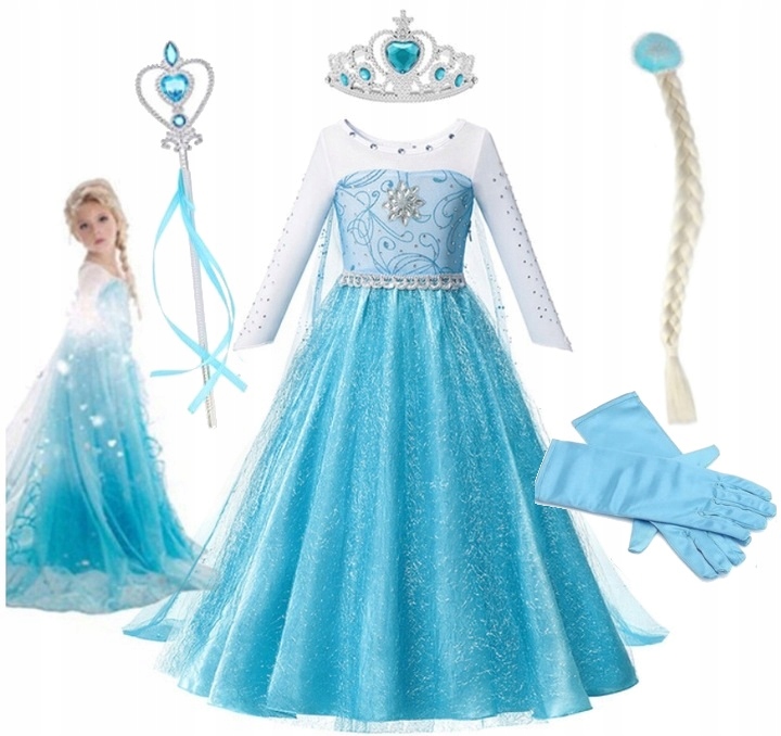 Karnevalový kostým Elsa 4-5 rokov, korunka, palicka, vrkoč a rukavice