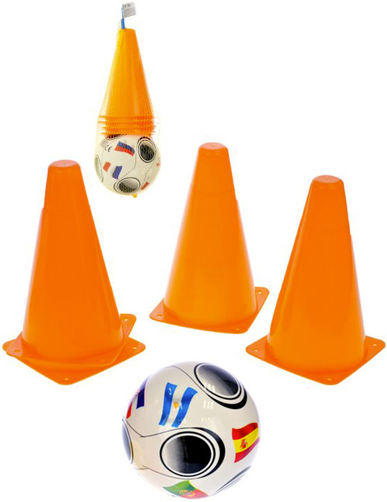 Praktická tréningová sada pre tých najmenších futbalistov.Rozostav kužele a trénuj!4 kužele a malá futbalová lopta sa hodí pre každého malého športovca.Môžete si naznačiť góly alebo sa učiť behať s loptou medzi kužeľmi.